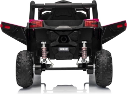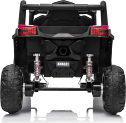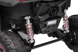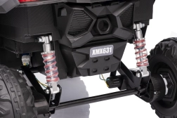 A Buggy Madman UTV-MX gyermek elektromos autó EVA habszivacs kerekekkel van felszerelve, amelynek mérete 24x10 cm, így kényelmes és sima vezetést biztosít. Az elöl és hátul található felfüggesztéssel és a két sebességgel ez a modell stabilitást kínál egyenetlen terepen is.