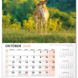 Vadászok számára tervezett falinaptár, amely lenyűgöző állatfotókat és vadászati időszakokat, valamint a napfelkelték és naplementék idejét kínálja.