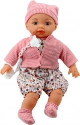 Gyerek baba aranyos öltözetben, amely tartalmaz puha rózsaszín pulóvert, füles sapkát és mintás nadrágot. A ruhák könnyen levehetők, ami lehetővé teszi a játék személyre szabását az elképzeléseik szerint. A valósághű megjelenés, beleértve a nyitott szájat és nyitott szemeket, valóban emlékeztet valódi csecsemőre, ami segít a gyerekeknek a gondoskodás és felelősségteljes viselkedés fejlesztésében.