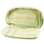 A tolltartó belsejében hálós zsebek találhatók, amelyek ideálisak kisebb tárgyak, például radírok, hegyezők vagy kapcsok számára. A tolltartó tartós anyagból készült, modern zöld dizájnnal és világos elemekkel, amelyek könnyen karbantarthatók. Nemcsak az iskolában hasznos, de irodában vagy szabadidős tevékenységekhez is alkalmas.