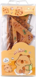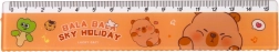 A készlet 4 fontos eszközt tartalmaz: vonalzót, 45° és 60° háromszögeket és szögmérőt. Ez a készlet tartós és átlátszó műanyagból készült, ami tiszta mértékeket és pontosságot biztosít használat közben. Zárható tokban van csomagolva, amely illik a kapibara grafikai motívumhoz.