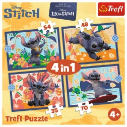 A készlet 4 önálló puzzle-t tartalmaz hawaii nyaralás témában, a népszerű Lilo & Stitch filmből. Összeállítás után a képek mérete 285 × 205 mm, ideális asztalon vagy alátéten való kényelmes kirakáshoz. A változó darabszámnak köszönhetően a gyerekek hangulat szerint választhatnak, és fokozatosan fejleszthetik készségeiket.