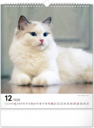 A közkedvelt 'Macskák 2026' fali naptár csodálatos macskafotókat hoz el teljes szépségükben és változatosságukban. Univerzális fehér hátterű naptári elrendezése biztosítja, hogy könnyedén illeszkedjen bármilyen enteriőrbe: