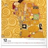 Elegáns falinaptár Gustav Klimt műveivel 2026-ra, amely nagyszerű kiegészítője lesz a belső terének. A naptár gyönyörű reprodukciókat tartalmaz, kiváló minőségű papíron, amelyek megörökítik ennek az ikonikus festőnek a művészetének szépségét.
