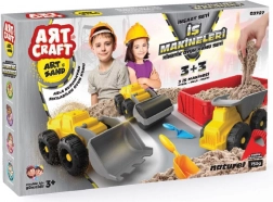 - A készlet különféle építőjárműveket és kinetikus homokot tartalmaz.