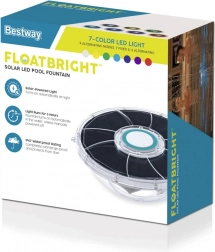 Bestway napelemes LED szökőkút modern, úszó kiegészítő a medencéhez, amely a vízjátékot színes megvilágítással ötvözi. Sötétedéskor automatikusan bekapcsol, és egygombos, egyszerű kezeléssel rendelkezik.
