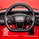 A piros autó valósághű részletekkel és Audi logóval autentikus élményt nyújt minden kis sofőrnek.