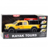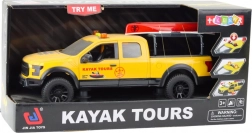 A tetőn szállított kajakkal ellátott terepjáró azoknak a gyerekeknek készült, akik izgalmakra vágynak. Ez a modell masszív szerkezetet, stílusos sárga színt és valósághű részleteket kínál. A nyitható ajtók fokozzák a szórakozást és fejlesztik a finommotorikát. A tetőn lévő levehető kajak lehetővé teszi, hogy a gyerekek beleéljék magukat a kajakos kalandok vezetőinek szerepébe.