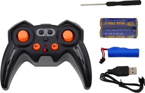 A modern, 2.4 GHz-es távirányítóval a kamion négy irányban irányítható, és különleges funkciók is elérhetők, mint például a demó mód és a hangok lejátszása.