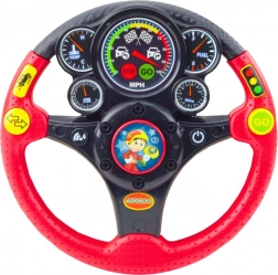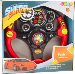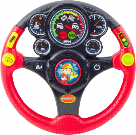 A duda, az irányjelzők és a menet hangjainak utánzása, valamint a megvilágított műszerek interaktív és élethű játékot biztosítanak. A kormányon 7 működő gomb található, amelyek mindegyike más-más effektet aktivál – a motorhangoktól a fényeken át a dallamokig és a rezgésekig. Az ON/OFF indítókulcs formájú gomb lehetővé teszi, hogy a gyermek úgy kezdje a játékot, mintha valódi autóban lenne. A műszerek megvilágításának utánzata és a valósághű rezgések fokozzák az autó utasterében való jelenlét érzetét. A játék kiválóan támogatja az érzékszervek, a mozgás- és látáskoordináció, valamint a képzelet fejlődését.