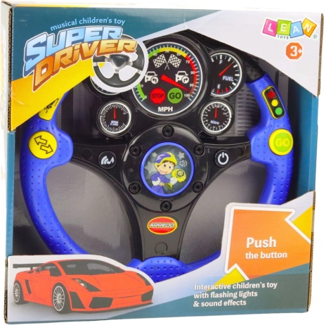 A gyermekeknek szánt interaktív kormány 7 funkcionális gombot tartalmaz, amelyek mindegyike más-más effektust indít – a motorhangoktól a fényeken át a dallamokig és a rezgésekig. A kulcs formájú ON/OFF gomb lehetővé teszi, hogy a gyermek úgy játsszon, mintha igazi autóban ülne. A műszerek háttérvilágítása és a valósághű rezgések fokozzák az autókabinban lét érzését.