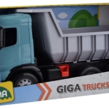 Masszív gyermek billenőplatós teherautó tágas platóval nagy rakomány szállításához – örömet szerez a kis építőknek. Tartós műanyag kivitel, kihajtható plató biztonsági reteszeléssel és modern türkiz–szürke design. A játék megfelel az EU biztonsági előírásainak, és Csehországban készült.
