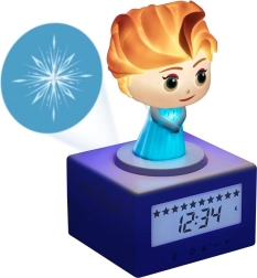 Világító asztali ébresztőóra Elsa hercegnő figurájával a Frozen filmből. Tartalmaz USB kábelt a tápláláshoz és vetítést a falra a könnyebb elalvás érdekében.