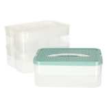 Játéktároló ideális megoldás a dolgaid rendszerezésére és tárolására. Három átlátszó konténerből, kiemelkedésekkel rendelkező fedelekből és testreszabható rekeszekből áll, melyek lehetővé teszik a helység szükség szerinti rendezését.