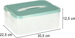Ez a szervező ideális megoldás azok számára, akik rendet szeretnének tartani a játékok, az építőelemek vagy más apróságok között. Átlátszó tárolódobozt tartalmaz erős kapcsokkal a tartalom biztonságos megőrzéséhez.