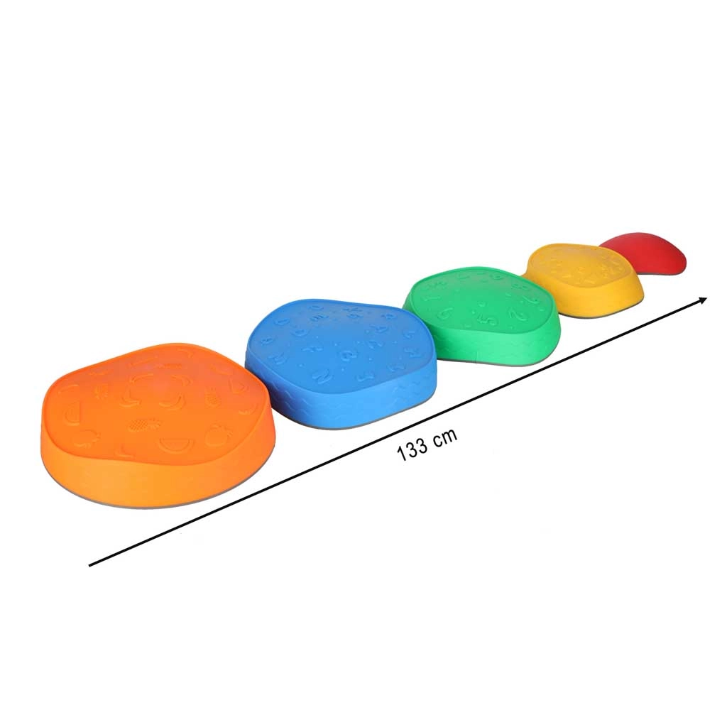 Masszív felépítésüknek és csúszásgátló talpaiknak köszönhetően a kövek különböző padlófelületeken is stabilak maradnak. A tartós poliuretán kellemes tapintású és könnyen tisztítható. A színes motívumok (számok, betűk, formák, gyümölcsök, minták) játékos tanulást és a finom- és nagymozgások fejlődését támogatják.