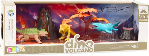 Utazzon vissza az időben a lenyűgöző dinoszaurusz figura készlettel! Ez a teljes csomag lehetőséget kínál, hogy realisztikus jeleneteket hozzon létre a mezozoikum korából, amely tökéletes szórakozásra, tanulásra és képzeletfejlesztésre. Tartalmaz 3 dinoszaurusz figurát, egy vulkánt, egy fatörzset és egy színes fát, amely hangulatot ad a régi korszakhoz.
