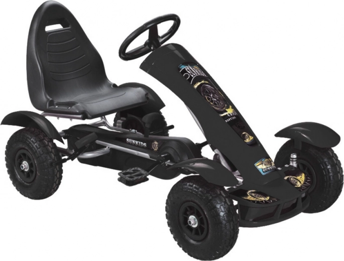 Fekete pedálos gokart kiváló választás a gyerekeknek, akik kalandra és szórakozásra vágynak. Ez a minőségi pedálos gokart nagyszerű kombinációját kínálja a biztonságnak és a teljesítménynek.