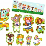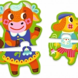 A DJECO Puzzle Nagy és Kicsi a Farmon egy szórakoztató és oktató játék a legkisebbeknek. A csomag nyolc két részből álló figurát tartalmaz, melyek háziállatokat ábrázolnak, és a gyerekek könnyen összeilleszthetik őket a nagy daraboknak köszönhetően.