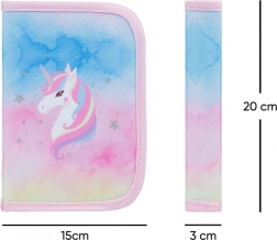BAAGL Zippy plus Rainbow Unicorn szett elsősöknek könnyű és tartós iskolatáskával, egyszintes tolltartóval és egy praktikus zsákkal. Minden összetevő környezetbarát anyagokból készült és számos praktikus funkciót kínál.