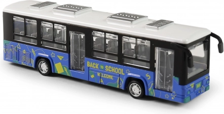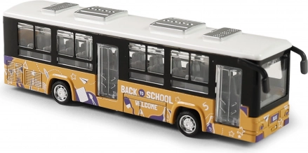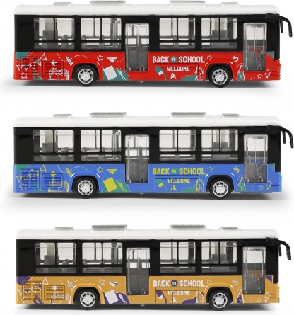 Fém busz nyitható ajtókkal és szabadon futó kerekekkel, 12 cm hosszú. Ideális játék a kis sofőröknek.