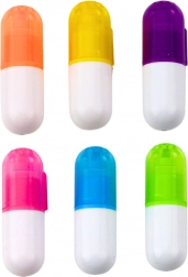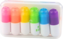 A mini kiemelő filctollak kompakt méretei 5,5 x 2 cm, így bármilyen tolltartóba, kozmetikai táskába vagy szervezőbe beleférnek. Kapszula formájuk nemcsak figyelemfelkeltő, hanem megkönnyíti a fogásukat is. Az egész készlet praktikus műanyag tokban van tárolva, ami megkönnyíti a tárolást és szállítást anélkül, hogy elvesznének.