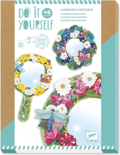 Kreatív készlet a Djeőtől, amely lehetővé teszi a gyerekek számára, hogy egyedi virágos tükröket készítsenek, ezzel megmutathatják kreativitásukat és gyönyörű dekorációs elemeket hozhatnak létre a saját szobájukba. Ideális a finommotorikus képességek fejlesztéséhez és a gyermekek esztétikai érzékének kialakításához.