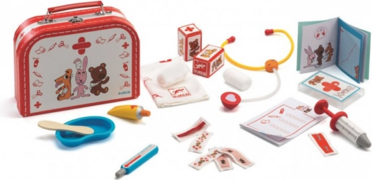 A DJECO Orvosi táska ideális játék azoknak a gyerekeknek, akik kis orvosokká akarnak válni. Ez a készlet támogatja a kreatív játékot, a társas készségek fejlesztését és az empátiát. Különféle orvosi eszközöket tartalmaz, mint például sztetoszkóp, hőmérő és még sok más.