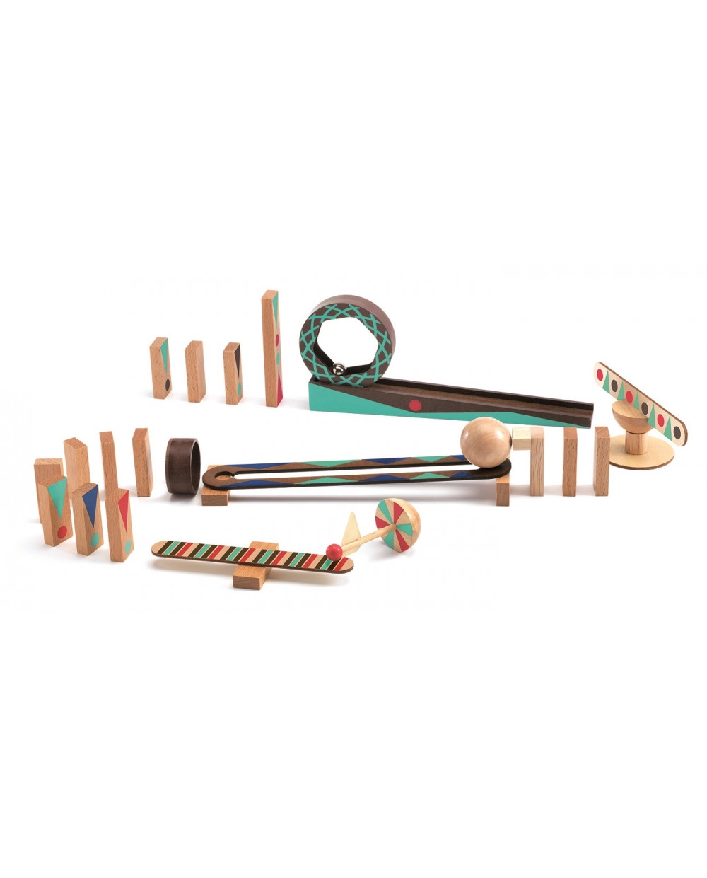 Fedezze fel a Djeco híres márkája által készített Zig Go fa pálya lenyűgöző világát. Ez a játékkészlet 28 darabot tartalmaz, amelyek támogatják a gyermekek fantáziájának és motorikájának fejlődését.