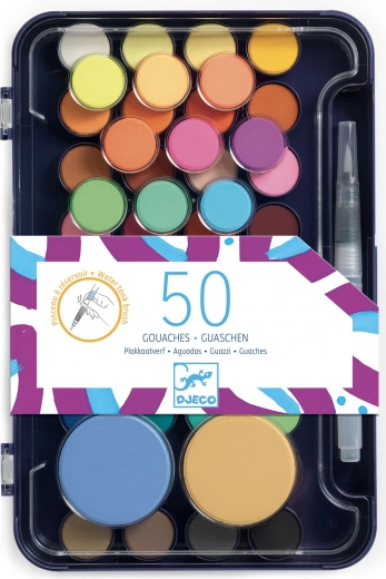 Fedezze fel a festés örömét ezekkel a Djeco kétszintes vízfestékekkel. Ez a készlet a következőket kínálja: