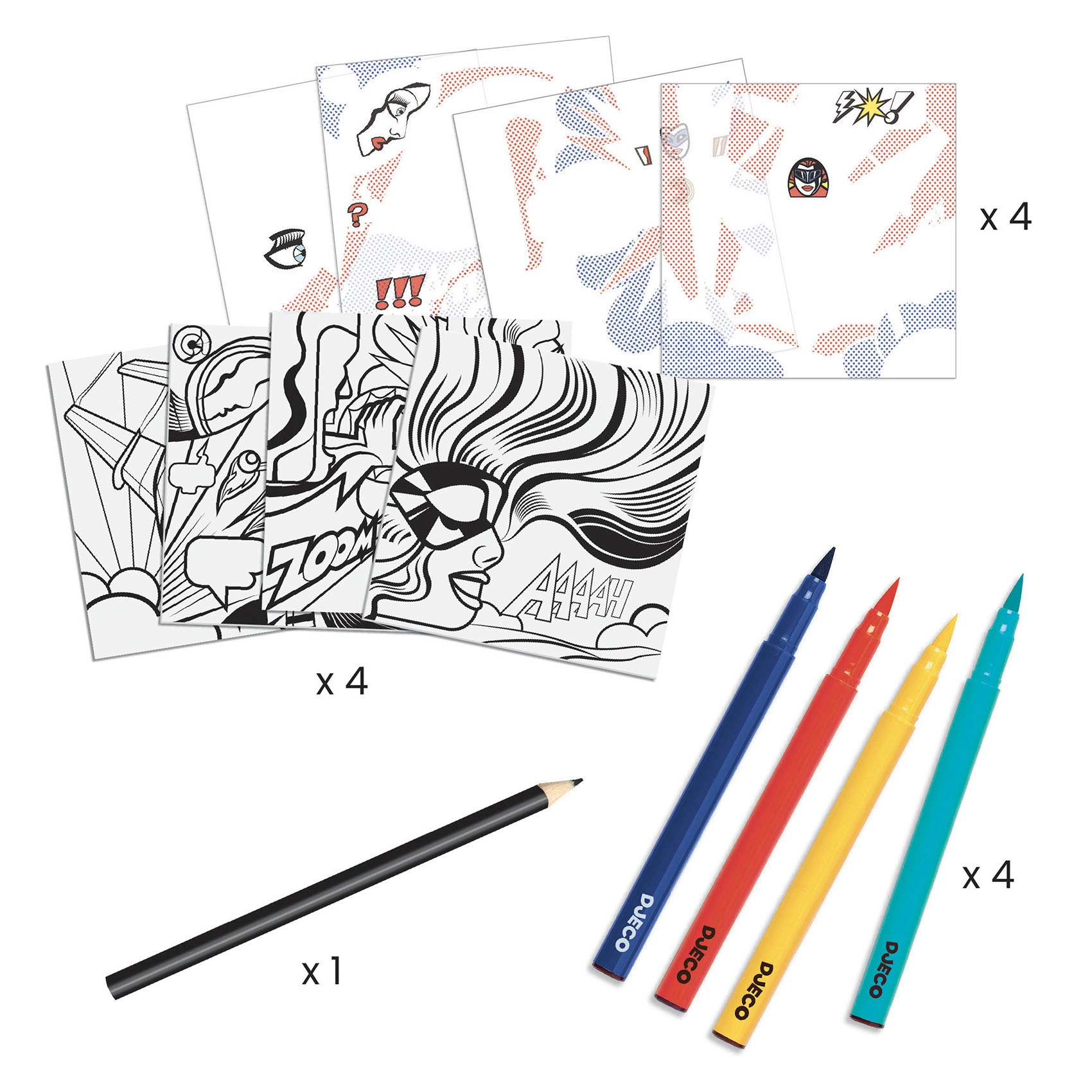 A DJECO készlet csodálatos lehetőséget kínál a pop-art világába való elmerülésre, egy csipetnyi eredetiséggel. Ez a kreatív tevékenység ösztönzi a fiatal tehetségeket Roy Lichtenstein egyedi stílusának felfedezésére és saját művészi egyéniségük megismerésére.