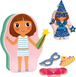 Varázslatos, mágneses kirakó kis alkotóknak, praktikus, tündér alakú dobozban. A gyerekek végtelen ruházat- és kiegészítő‑kombinációt próbálhatnak ki a 24 mágneses elemmel, amelyek könnyen és stabilan illeszkednek. A kétoldalas doboz két különböző figurát kínál, így a móka sosem ér véget.