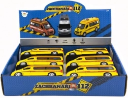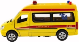 Mentőautó – fém-műanyag kisautó fényekkel és hangokkal, 15 cm, felhúzós visszahúzással