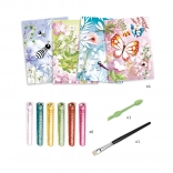 DJECO Csillogó pillangók homokfestése egy kreatív készlet, amely lehetővé teszi a gyerekek számára, hogy gyönyörű és ragyogó pillangókat készítsenek homokfestéssel.