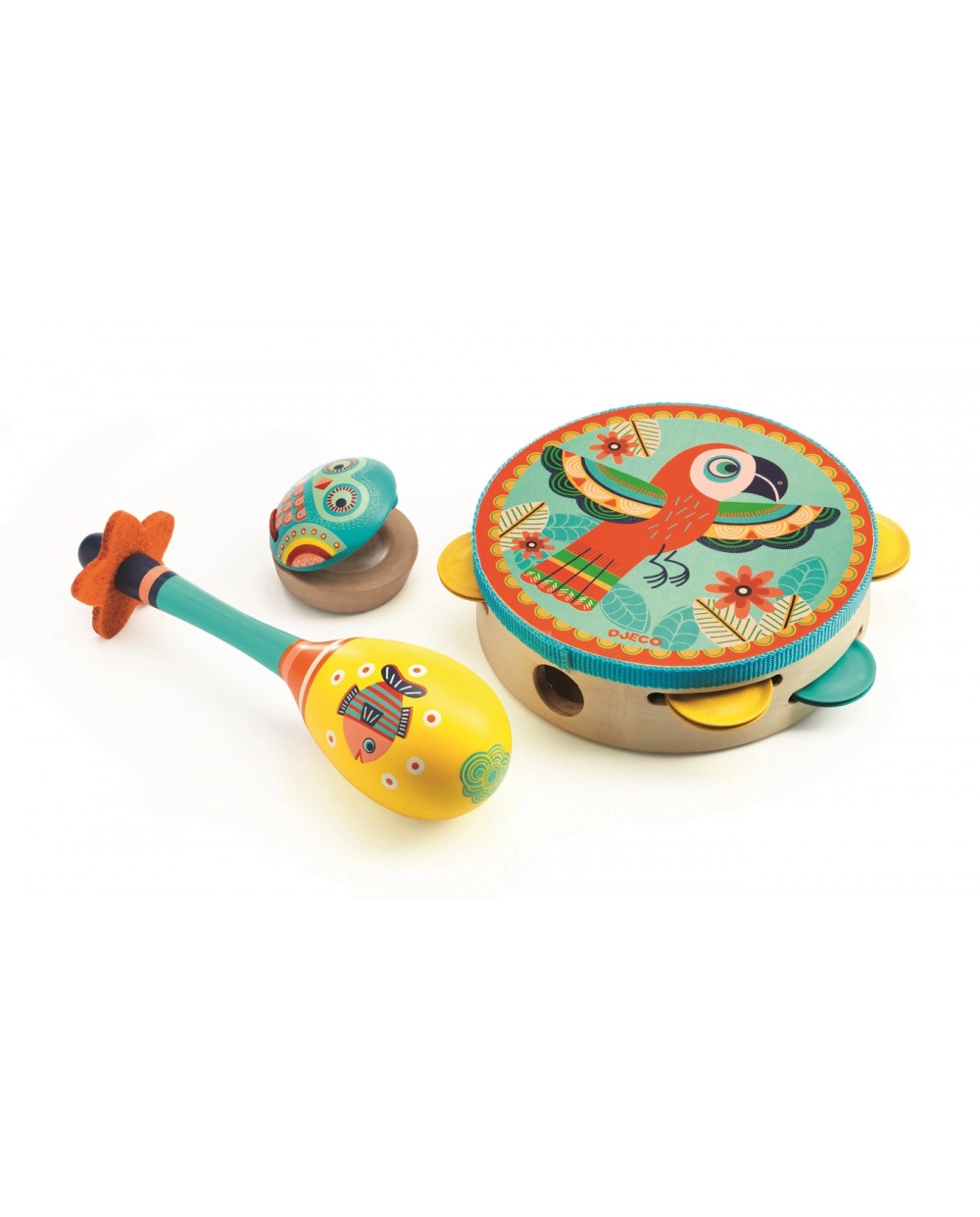 A Djeco zenei készlet különböző eszközöket tartalmaz, amelyek tökéletesen illenek a kicsi kezekhez. Minden hangszer gondosan lett tervezve, hogy biztonságos és könnyen használható legyen a gyerekek számára. Ezzel a készlettel a kis muzsikusok felfedezhetik a különböző hangokat és ritmusokat, ami támogatja ritmusérzéküket és koordinációjukat.