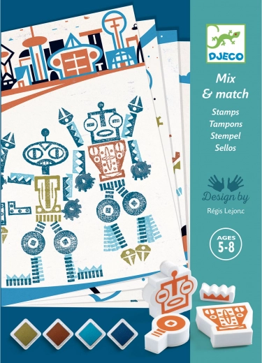 Merüljön el gyermekeivel a kreativitás világában a Djeco Roboti bélyegző készlettel. Ez a készlet ideális kis művészek számára, akik szeretnek alkotni. A készlet tartalma: