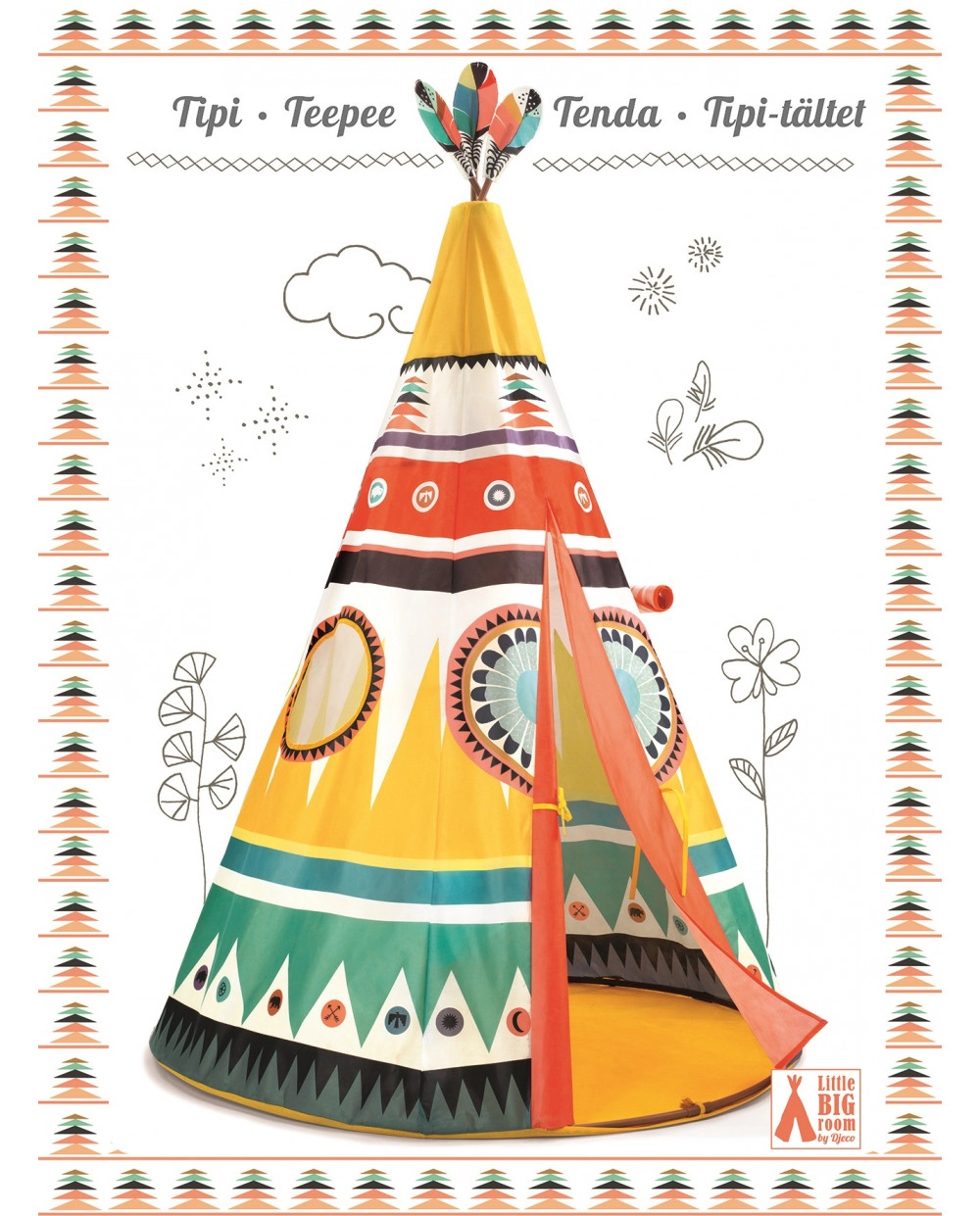 A Djeco gyerek teepee sátor *színekkel* inspirálja a kis kalandorokat a fantázia világába, amelyeket az indián kultúra ihletett. Könnyen *hordozható* és *egyszerűen összeszerelhető*, elegendő teret kínál a játékhoz és a pihenéshez.