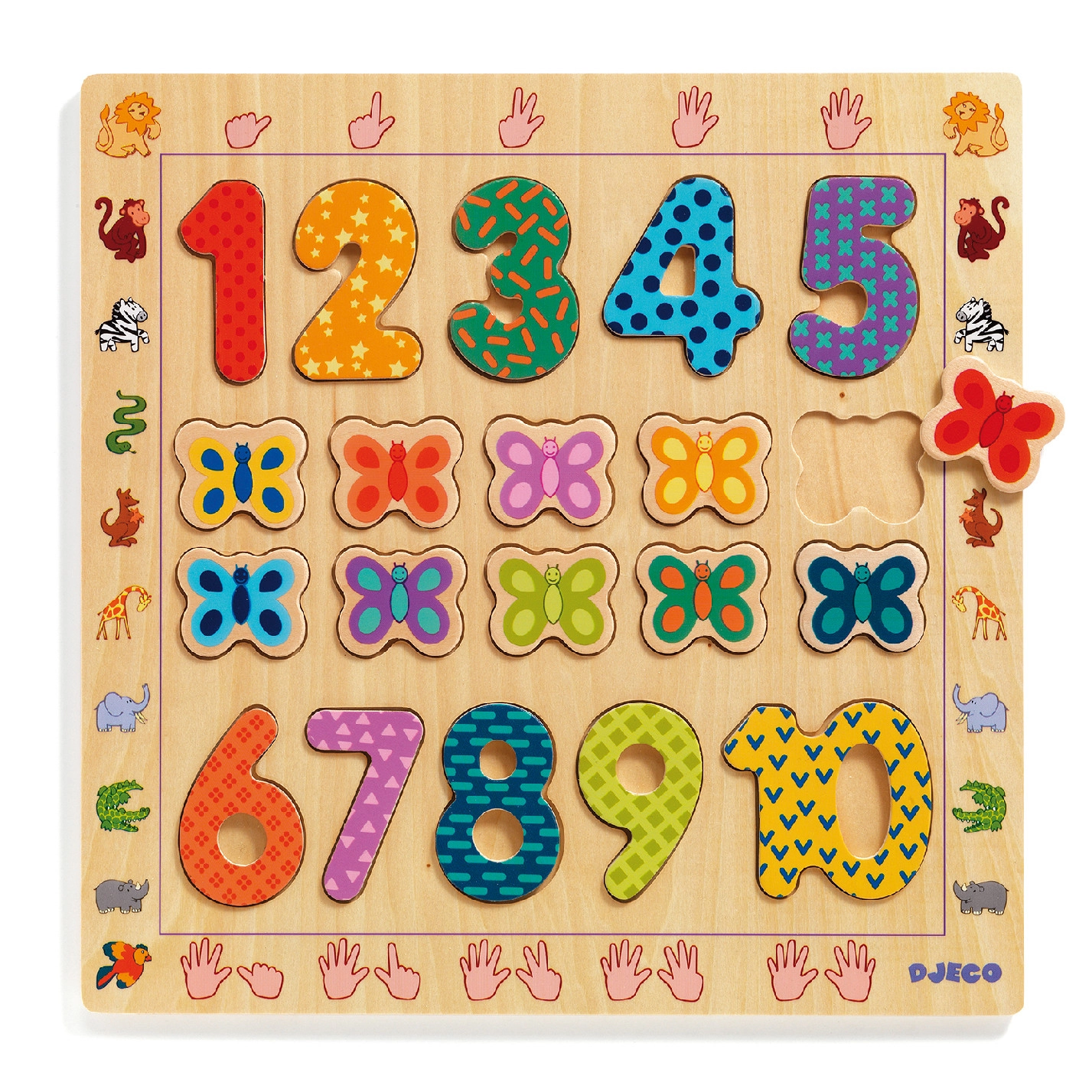 A Számolós pillangós puzzle a DjECO márkától egyszerre biztosít szórakozást és oktatást. Segít a gyermekeknek fejleszteni a finommotorikát, az alakfelismerést és az alapvető számolást.