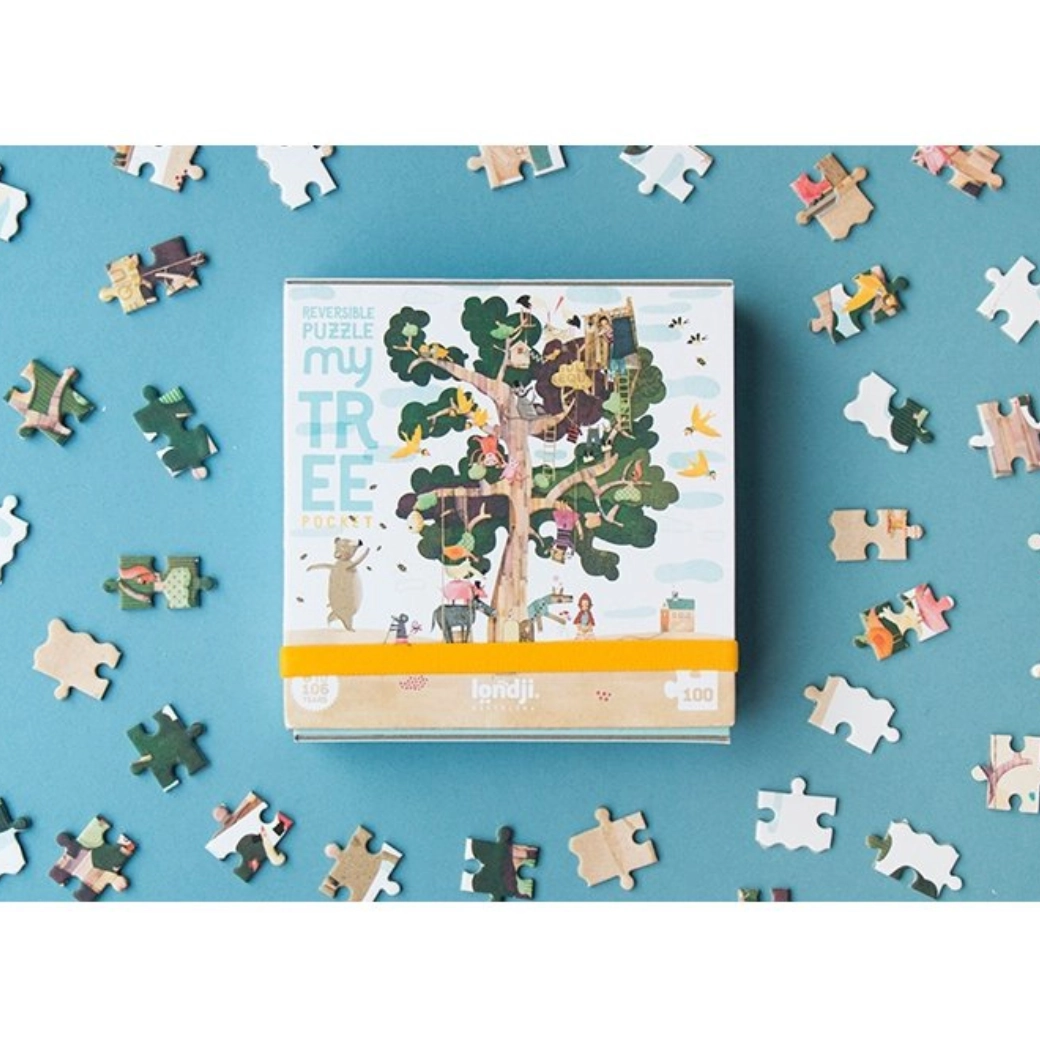 Fedezze fel Londji világát ezzel az egyedi zsebféle kétoldalas puzzle-lel. Egyik oldalán fa illusztrációval, a másik oldalon meglepő dizájnnal megduplázhatja a szórakozást.