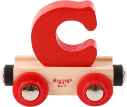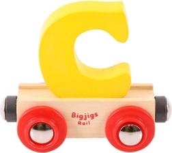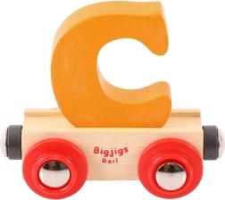 C betűs kocsi a Bigjigs Rail márkától, amely fából készült vonatkészlet része, szórakozást nyújt a gyerekeknek, és fejleszti képességeiket.