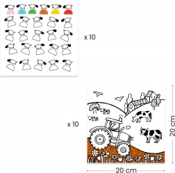 • Többféle, farmmotívummal ellátott színezőt tartalmaz, amelyek ösztönzik a kreatív gondolkodást.