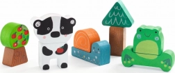 A Djeco Puzz & Match Happy Állatkák fa készlet szórakoztató kirakást és építést kínál egyben. A széles elemeknek köszönhetően a puzzle-t a gyerekek könnyen tartják, a kezelés természetes és biztonságos. Néhány elemet függőlegesen is fel lehet állítani, ami fantáziadús jelenetekkel bővíti a játékot és támogatja a kreativitást.