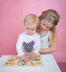 Az állatos fa labirintus ideális eszköz a gyermeki készségek fejlesztéséhez már egészen kicsi kortól. A színes motívumoknak és a mozgatható elemeknek köszönhetően a gyerekek könnyen megértik, hogyan kell a megfelelő fejet az állat testéhez párosítani, miközben gyakorolják a kéz és a szem összehangolt mozgását.