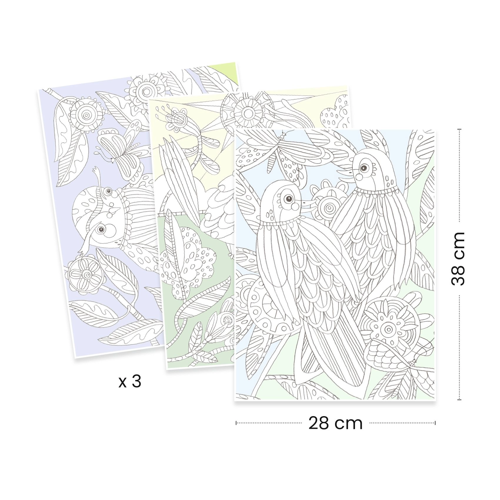 Fedezze fel a gyönyörű kifestő galériát madár motívumokkal a DJECO márkától. Tökéletes mind a gyerekek, mind a felnőttek számára, akik szeretik a kreatív kikapcsolódást.