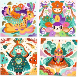 A DJECO fóliaképek nemcsak szép szórakozást jelentenek, hanem a gyerekek kreativitásának és kézügyességének fejlesztésére is alkalmasak. Ez a készlet tartalmaz: