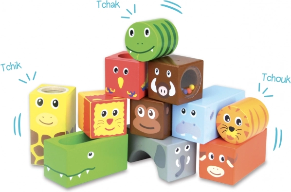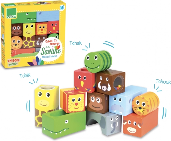 A VILAC Szavanna fa hangkockák ideális választás az első felfedezésekhez. Minden kocka más-más hangot vagy effektet rejt, és a tartós faanyag kényelmesen illeszkedik a kisgyermek kezébe. A játék természetes módon támogatja az érzékelés és a kreativitás fejlődését.