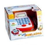 Számológép kijelzővel, nyitható pénzfiók, vonalkódolvasó fénnyel és hanggal