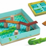 Okos logikai játék, amelyben a játékosok biztonságos átkelőt építenek egy krokodilokkal teli folyón. Minden kihívásnak csak egy helyes megoldása van, 3 nehézségi szinttel, és fejleszti a türelmet, a logikát és a dedukciót. A FSC® tanúsítvánnyal rendelkező fából készült, minőségi kivitel a gyerekeknek és a szülőknek egyaránt örömet szerez.