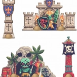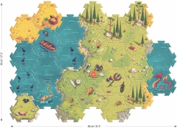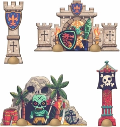 Ez az eredeti szett ötvözi a kirakó örömét a kreatív játékkal. 26 nagy, hatszögletű elem segítségével tágas jelenet állítható össze, míg a 4 függőleges díszlet fa talpakon térbeli hatást kölcsönöz az egész csatának. Az elemek nagyon erős kartonból, FSC® tanúsítvánnyal készülnek, így a gyakori használatot is bírják.