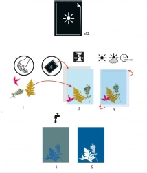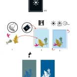 A Djeco fényérzékeny papírkészletével a napsugarakból kreatív élmény lesz. Helyezz a papírra természetes anyagokat, sablonokat vagy apró tárgyakat, hagyd, hogy a nap hasson, majd vízzel való leöblítés után a kék háttér előtt megjelennek a finom árnyak és sziluettek. Egyszerű folyamat, lenyűgöző eredményekkel.